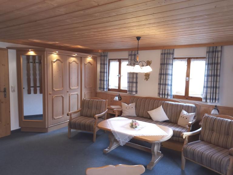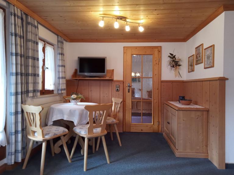 Die Ferienwohnung liegt im 1. Stock unseres Hauses. Sie ist ländlich eingerichtet und mit einem Schlafzimmer bietet die Wohnung Platz für 2 Personen. Außerdem haben wir ein separates Zimmer „Grünstein“ (ca. 20 qm) welches zur Ferienwohnung mit hinzugebucht werden kann und somit eine Belegung von bis zu 4 Personen möglich ist. Eine voll ausgestattete Küche und ein Wohnzimmer mit Esstisch, ein Süd- und Ost-Balkon mit Mittags- und Abendsonne und ein Bad mit DU/WC runden das Angebot ab.